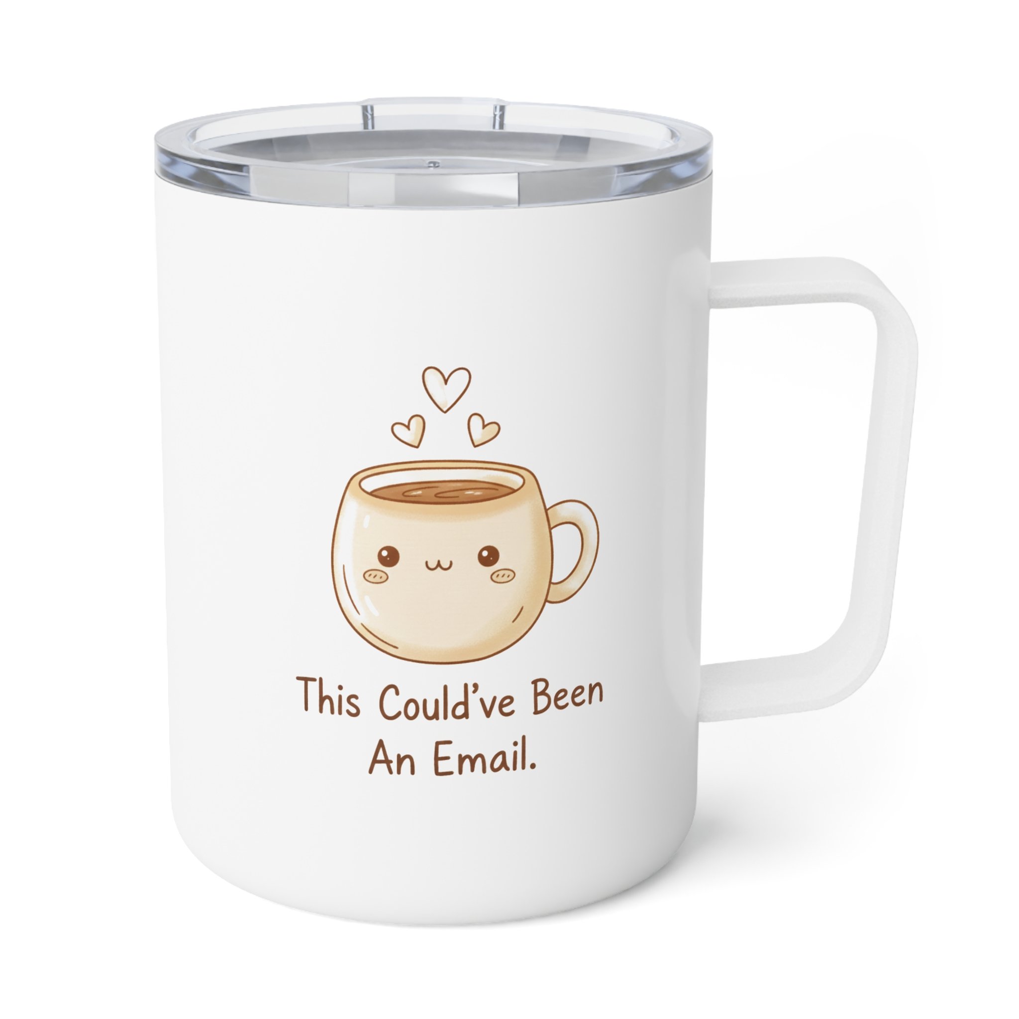 This 10oz insulated coffee mug brings quiet warmth to early mornings and late-night study sessions. The slim stainless steel body and double-wall construction hold temperature while preventing condensation, so your desk stays dry and your hands stay comfortable. A glossy, full-color wraparound finish showcases a subtle, hand-drawn design that peeks out from the clean white background — calm and understated rather than loud. The clear push-on acrylic lid lets you sip without guessing and helps guard against spills whether you’re commuting, reading at a café, or settling into a cozy nook. Lightweight and durable, it fits under most single-serve brewers and tucks neatly into bag pockets when you head out. Lead- and BPA-free, it’s crafted for everyday rituals that matter.