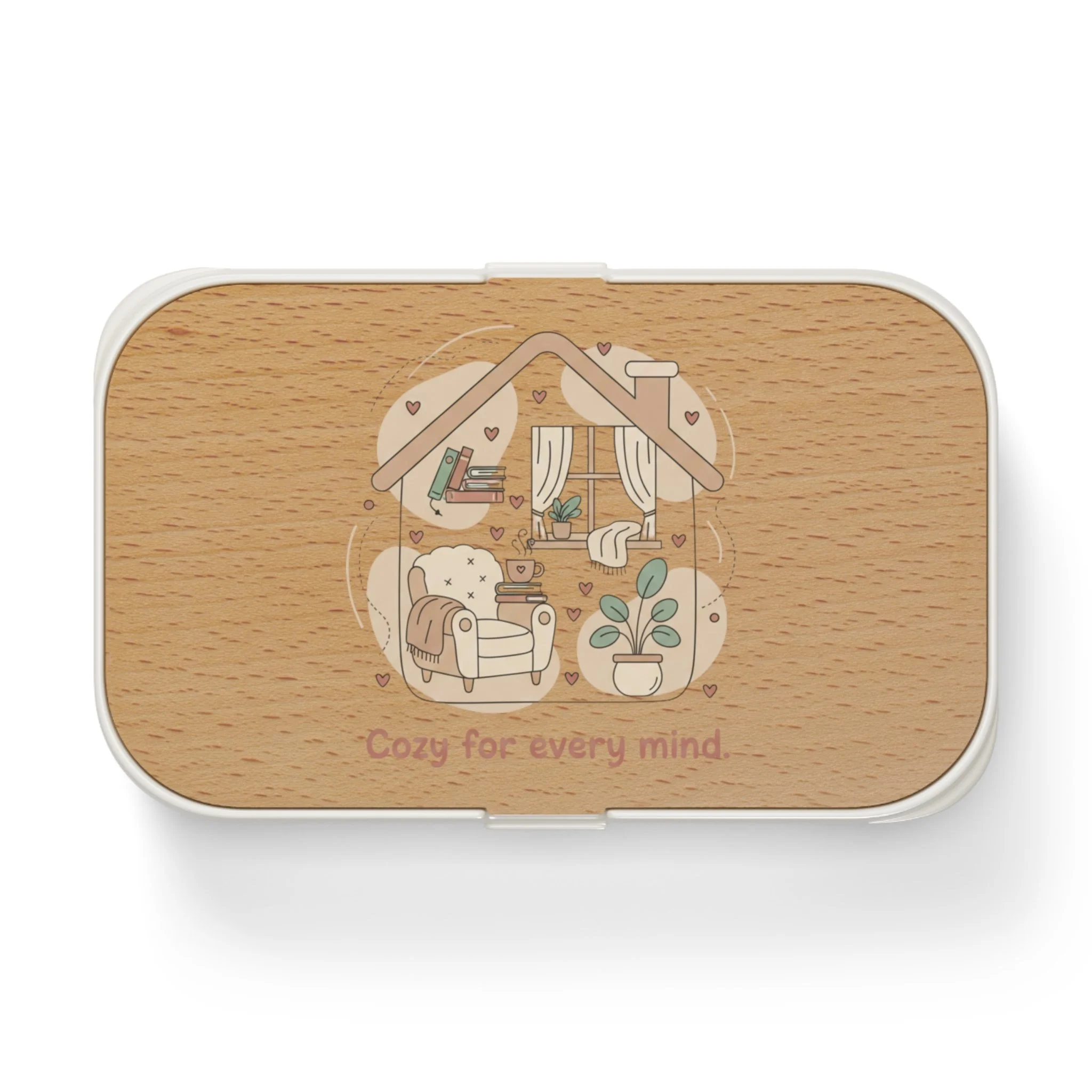 Bento Lunch Box — Cozy Home Illustration 'Cozy for every mind' Wooden Lid Lunchbox