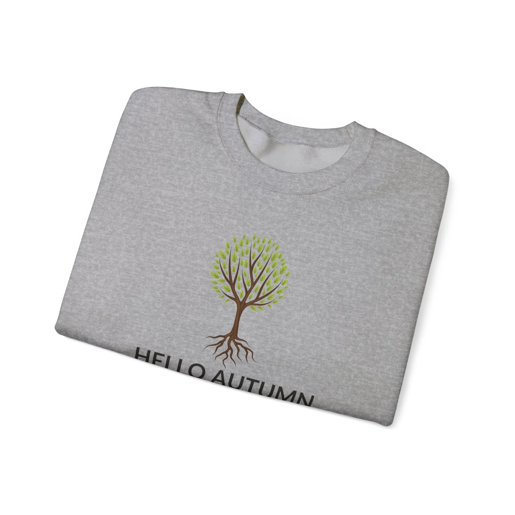 Hello Autumn Crewneck Sweatshirt — Cozy Fall Tree Graphic