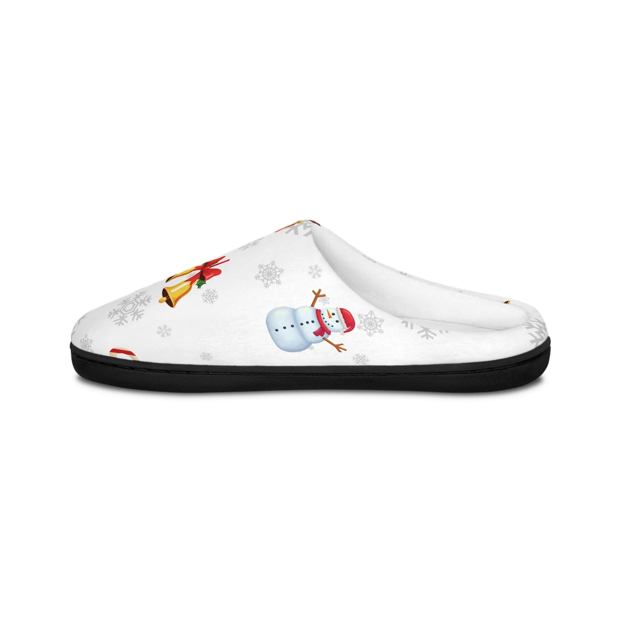 Curl your toes into warm, fuzzy comfort with these flannel fleece indoor slippers. The playful holiday pattern—cheery snowmen, reindeer, bells and wrapped gifts—brings a soft, festive touch to quiet mornings and cozy evenings. Lightweight but supportive, they slip on easily for quick trips to the kitchen or for lingering by the tree. The removable insole keeps them fresh and makes care simple, while the textured black rubber outsole gives confident grip on hardwood and tile. These slippers feel like a private little pause: warm, familiar, and quietly celebratory.